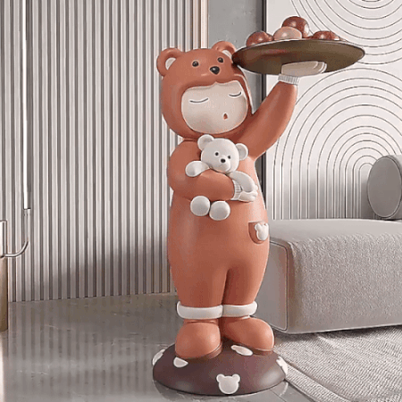 • Creative Design: The bear tray statue is not only a decorative piece but also a functional one, offering a tray for holding small items.
